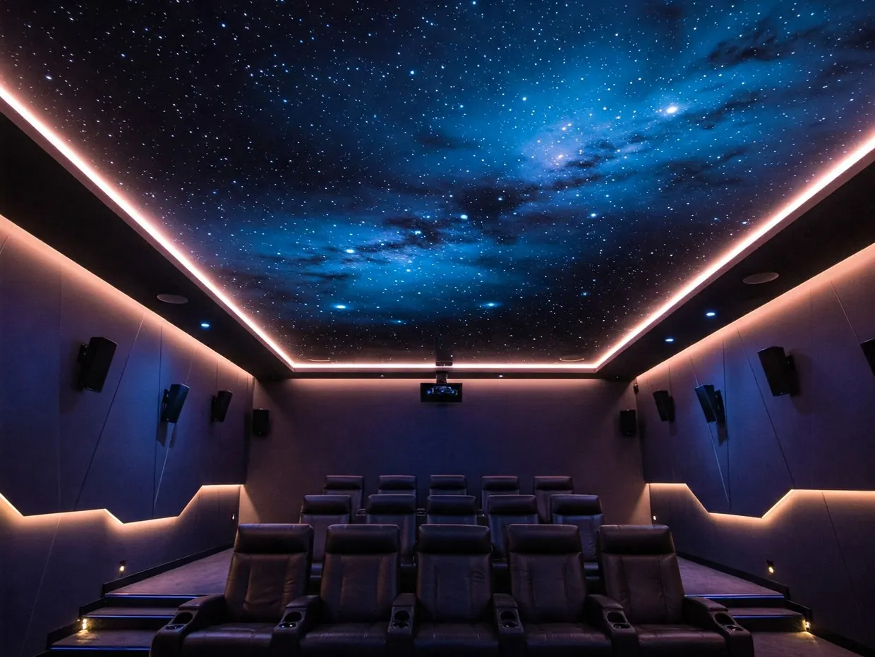 Additionally, stretch ceilings improve acoustics by offering a more controlled sound environment. The material can help reduce echo and sound reflection, which is ideal for maintaining optimal sound quality in a home theatre setting. Available in various matte or satin finishes, stretch ceilings can be customised to complement the dark, immersive setting typically found in cinema rooms, contributing to a cinematic feel without compromising the room’s function. Whether you’re looking for a way to modernise your space or enhance the acoustic experience, stretch ceilings are a fantastic choice for any home theatre enthusiast.