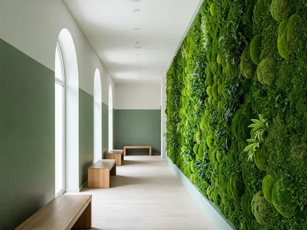 Moss walls are a striking and natural way to introduce biophilic design into interior spaces, offering visual appeal and measurable benefits to mental health and wellbeing. By bringing a sense of nature indoors, moss walls help reduce stress, enhance mood, and improve concentration, making them ideal for workplaces, hospitality venues, and retail environments. These maintenance-free installations also contribute to a calmer atmosphere by dampening sound and adding a soft, organic texture to any room. In addition to moss walls, we also install bark walls and brick slips, offering a variety of natural finishes to elevate and enrich interior spaces.
